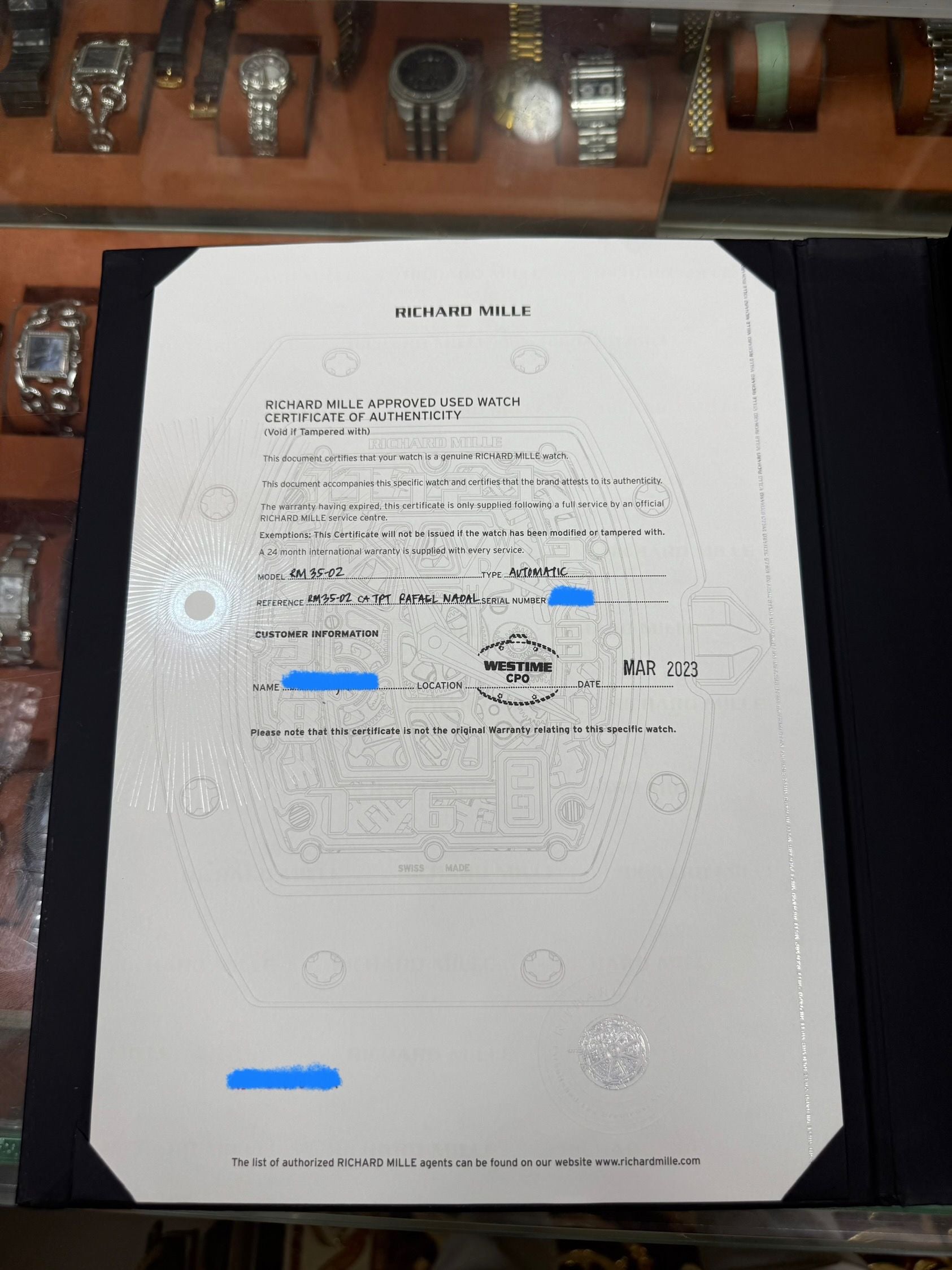 Richard Mille Rafael Nadal RM35-02 | 2019 | Extract Papers | 2023 RM Service